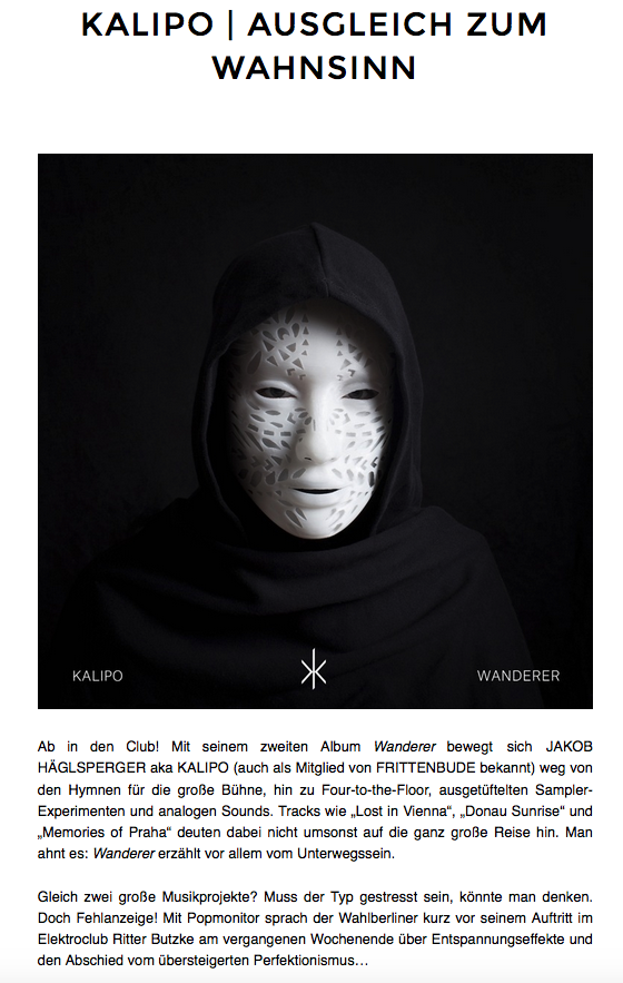 So far most people seemed to like Kalipos second album “Wanderer”. We have gotten a 4 out of 5 from DMC World. Popmonitor interviewed Kalipo and explained, why and how and for whom the album has got potential to equilibrate the madness of life.
